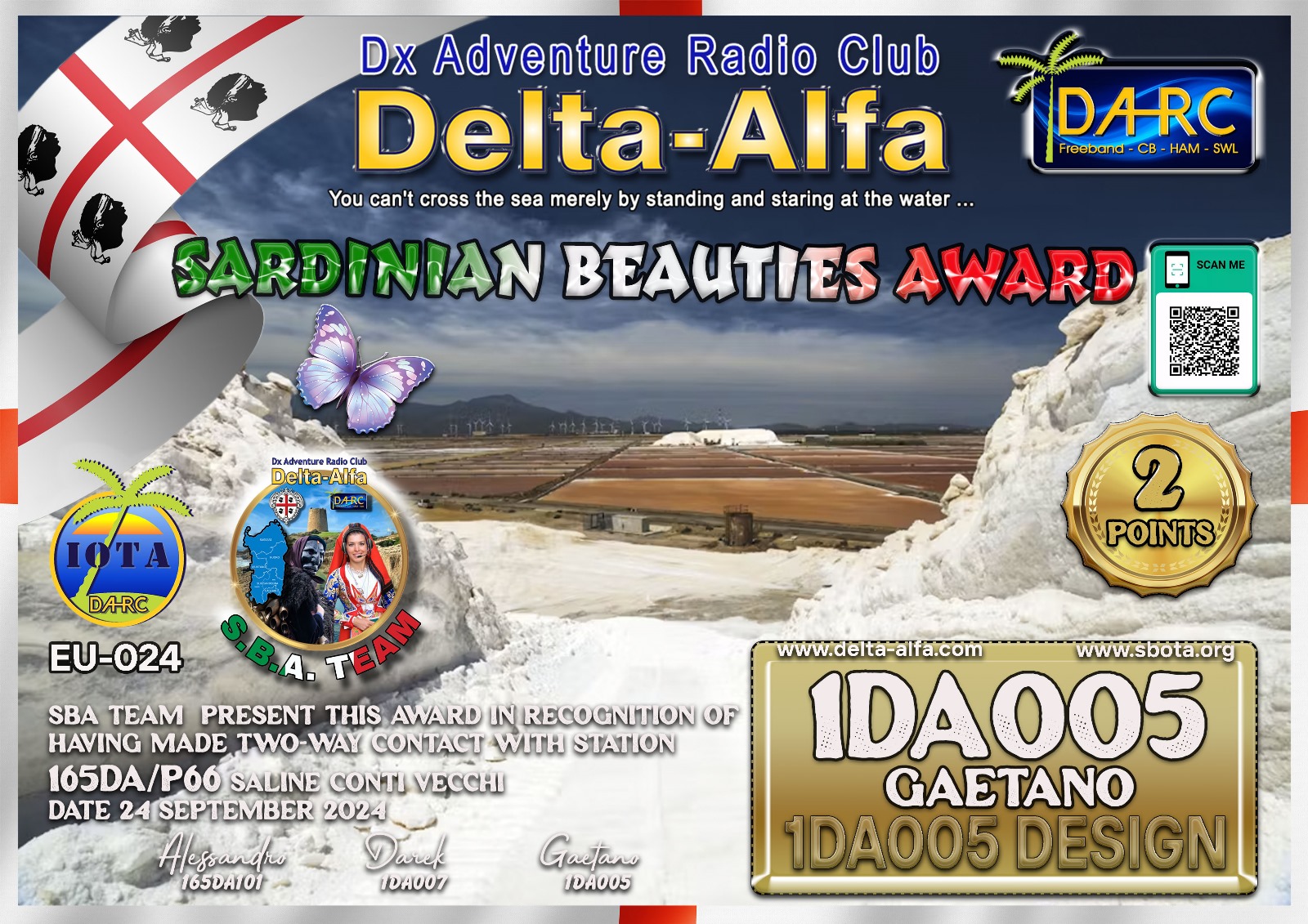 >>> 🐧NEW ONE SBA 2024 🐧<<< 165DA/P66 / 2 POINTS/ FAI SALINE CONTIVECCHI/ DATE: 24 September 2024 start @ 06.00 to 09.00 UTC/ Frequency 7️⃣0️⃣5️⃣ / PROVINCE 292 (Cagliari)/ Historical Region HR03 Campidano di Cagliari/ Municipality A474 (Assemini)