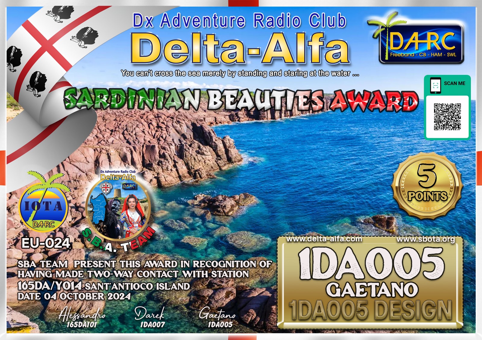 >>> 🐧NEW ONE SBA IOTA 2024 🐧<<< 165DA/Y014 / 5 POINTS./ DATE: 04 october 2024 start @ 12.00 to 16.00 UTC/ Freq. 7️⃣0️⃣5️⃣ (possibly Split +10) / PROVINCE 111 (Sud Sardegna)/ Historical Region HR01 Sulcis Iglesiente / Municipality B383 (Calasetta)