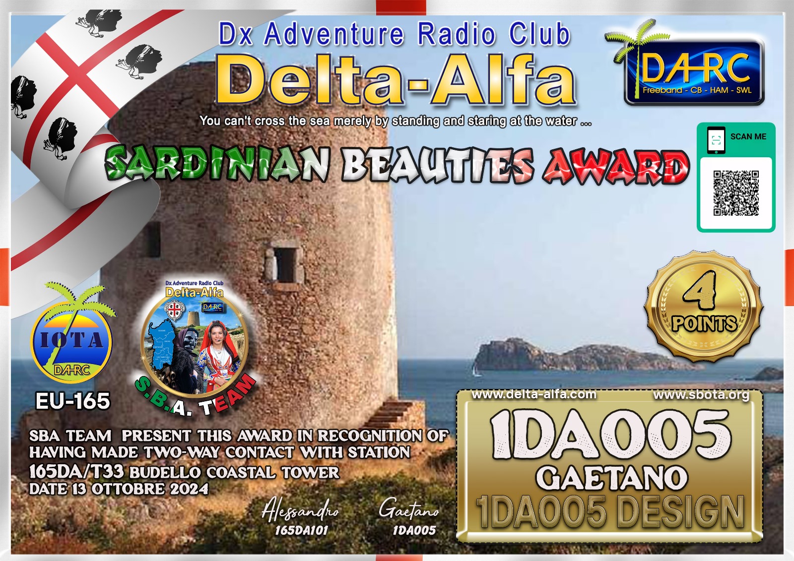 >>> 🐧NEW ONE SBA 2024 🐧<<< 165DA/T33 / 2+1 POINTS./ DATE: 13 october 2024 start @ 08.00 to “no takers” UTC/ Freq. 7️⃣0️⃣5️⃣ / PROVINCE 111 (Sud Sardegna)/ Historical Region HR01 Sulcis Iglesiente / Municipality L154 (Teulada)