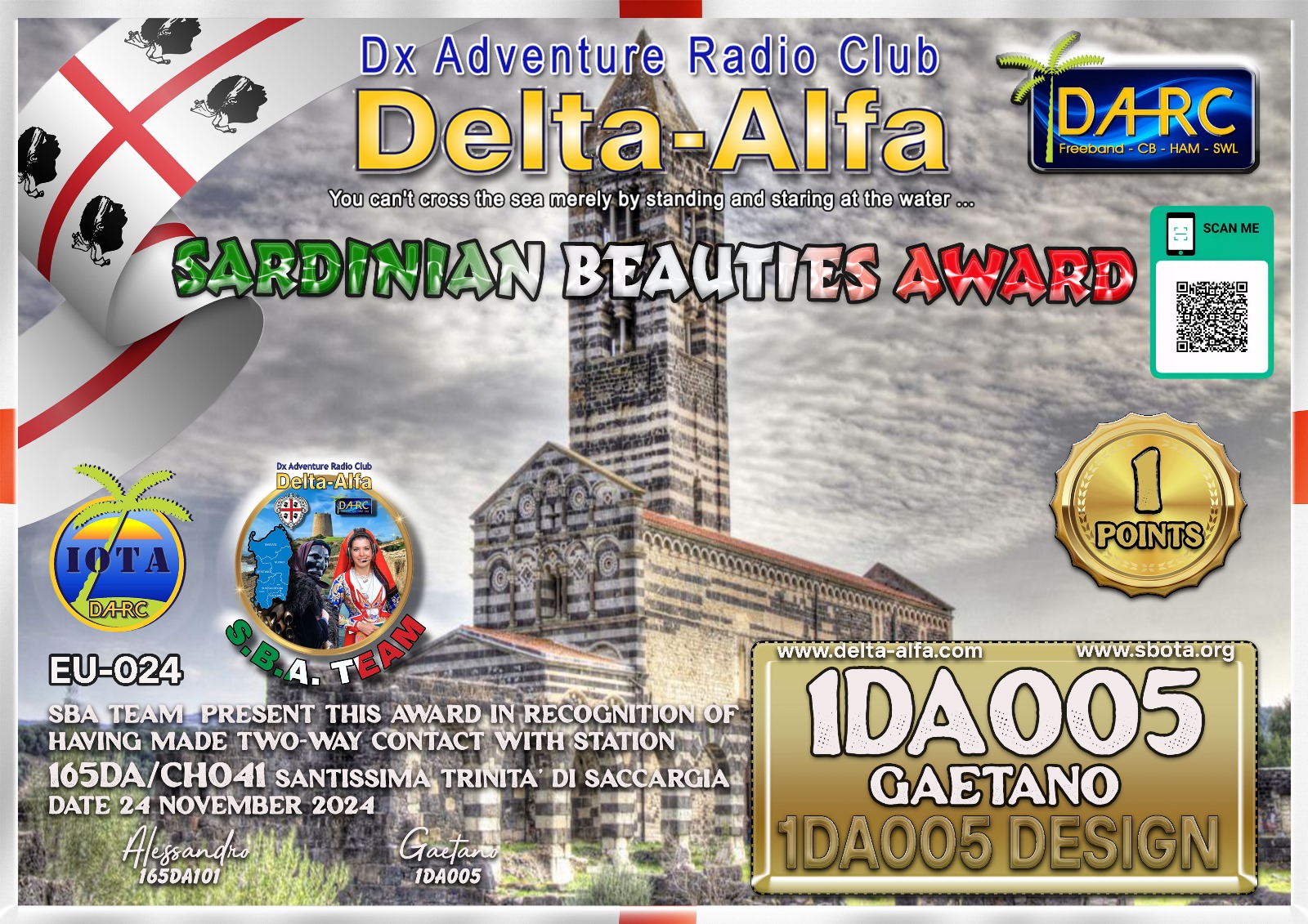 >>> 🐧NEW ONE SBA 2024 🐧<<< 165DA/CH041 / 1 POINTS./ DATE: 24 november 2024 start @ 10.00 UTC/ Freq. 7️⃣0️⃣5️⃣ SPLIT +10 Khz UP / PROVINCE 090 (Sassari)/ Historical Region HR24 Sassarese / Municipality C818 (Codrongianos)