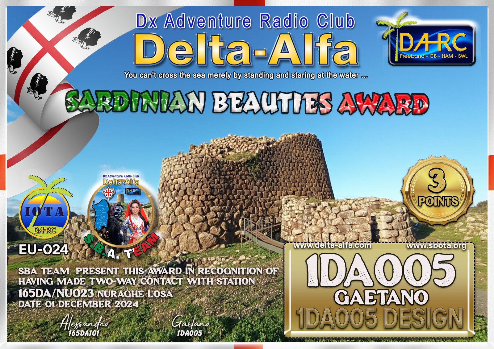 >>> 🐧NEW ONE SBA 2024 🐧<<< 165DA/NU023/ 3 POINTS./ DATE: 01 december 2024 start @ 10.00 UTC/ Freq. 7️⃣0️⃣5️⃣ SPLIT +10 Khz UP / PROVINCE 095 (Oristano)/ Historical Region HR10 Guilcer / Municipality A007 (Abbasanta)