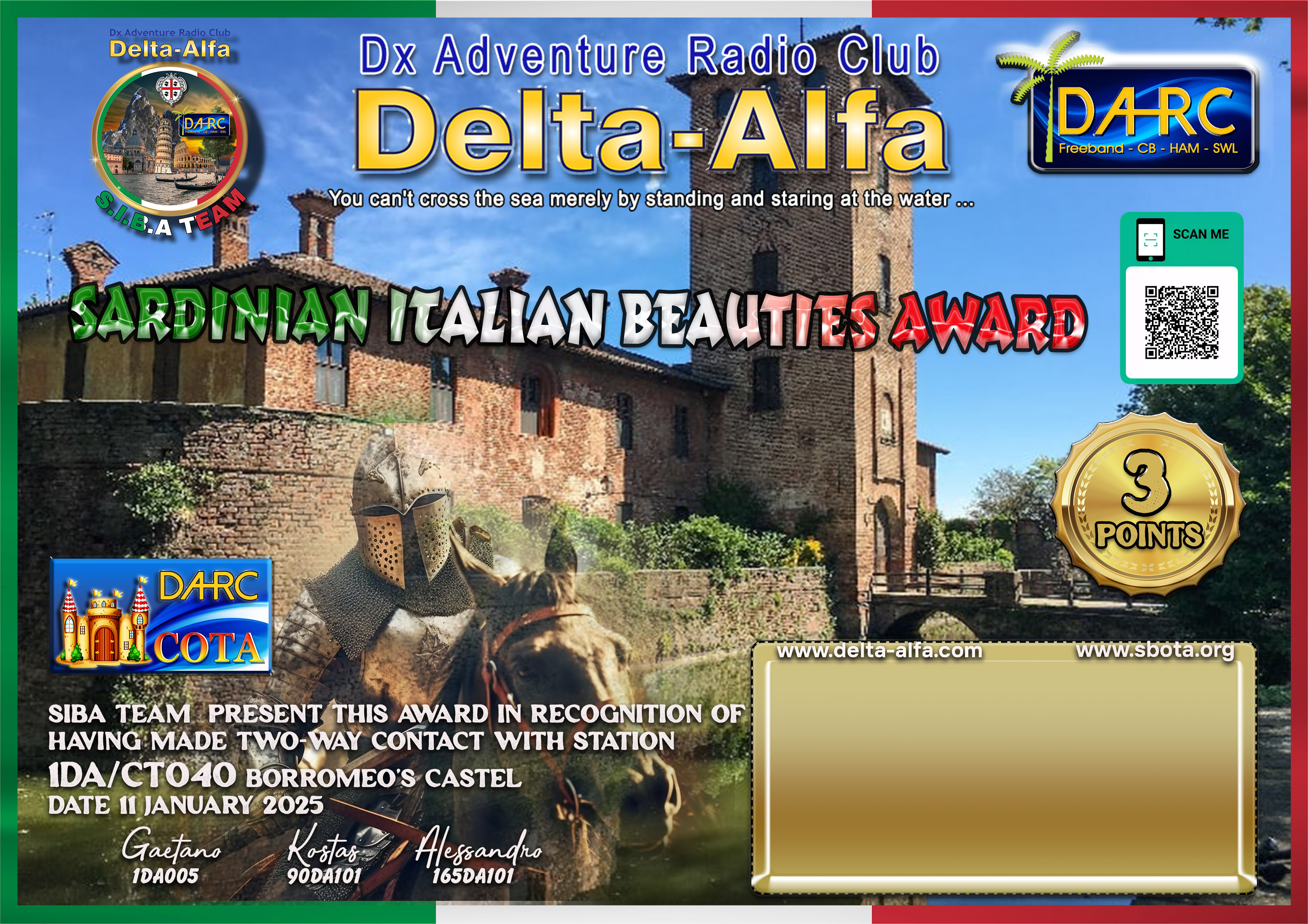 >>> 🐧NEW ONE SIBA 2025 🐧<<< 1DA/CT040 Castle of Peschiera Borromeo / 3 POINTS./ DATE: 11 january 2025 start @ 07.00 UTC/ Freq. 7️⃣0️⃣5️⃣ SPLIT +10 Khz UP / PROVINCE 215 (Area metropolitana di Milano)/ Municipality G488 (Peschiera Borromeo).