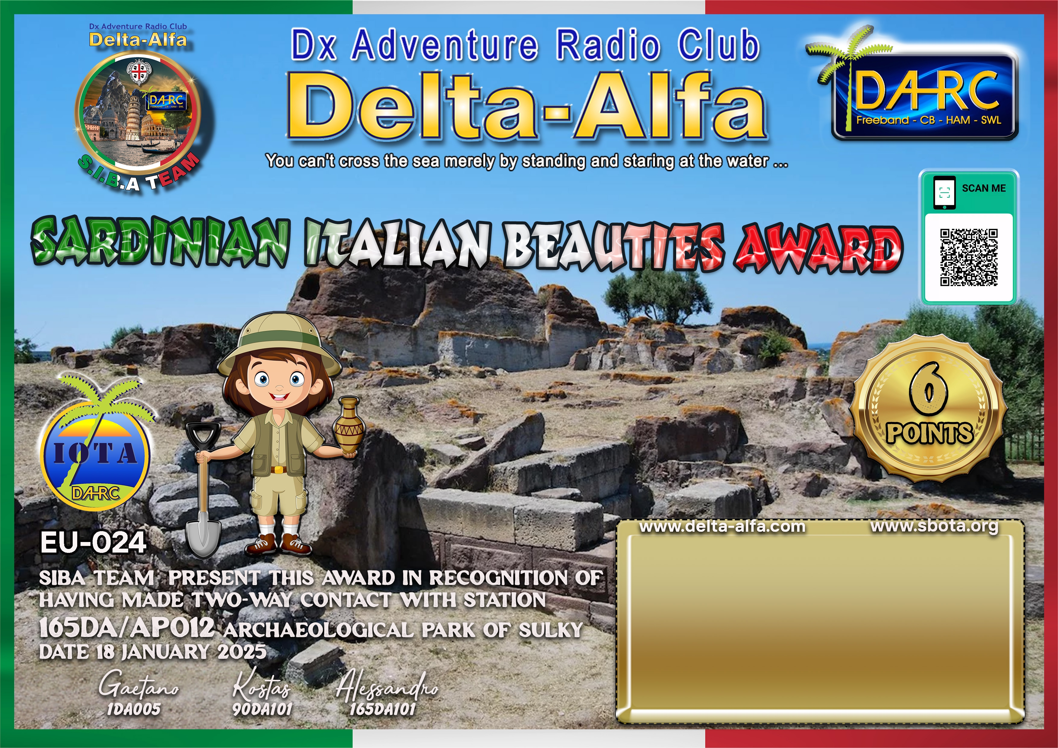 >>> 🐧NEW ONE SIBA 2025 🐧<<< 165DA/AP012 – Archaeological park of Sulky / 5+1 POINTS (inside IOTA)/ DATE: 18 january 2025 start @ 07.30 UTC/ Freq. 7️⃣0️⃣5️⃣ SPLIT +10 Khz UP / PROVINCE 119 (Sulcis Iglesiente)/ Historical Region 01 (Sulcis iglesiente) / Municipality I294 (Sant’ Antioco)