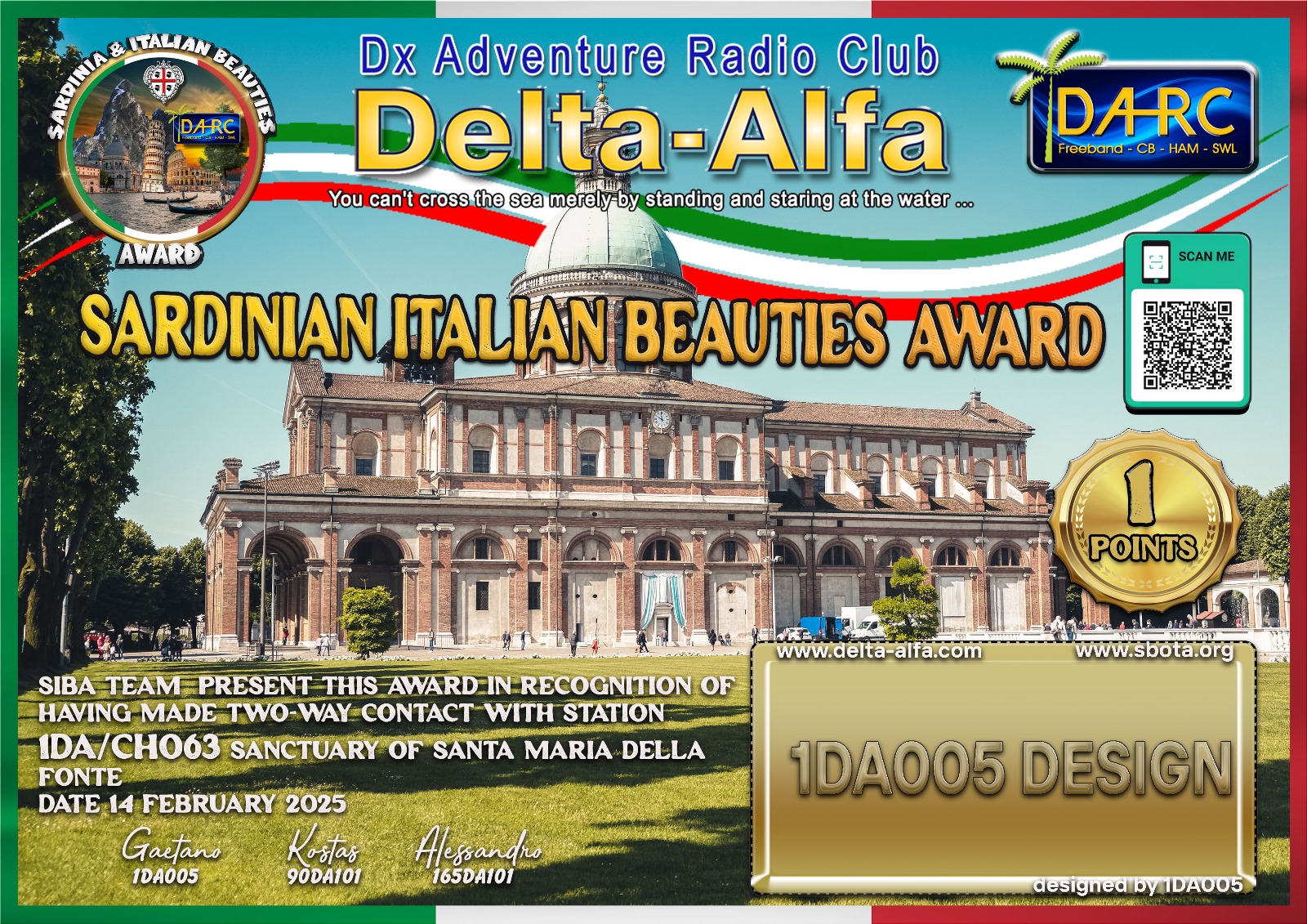 >>> 🐧NEW ONE SIBA 2025 🐧<<< 1DA/CH063 Santuario di Santa Maria del Fonte / 1 POINTS./ DATE: 14 february 2025 start @ 09.30 UTC/ Freq. 7️⃣0️⃣5️⃣ SPLIT +10 Khz UP / PROVINCE 016 (Bergamo)/ Municipality B731 (Caravaggio)