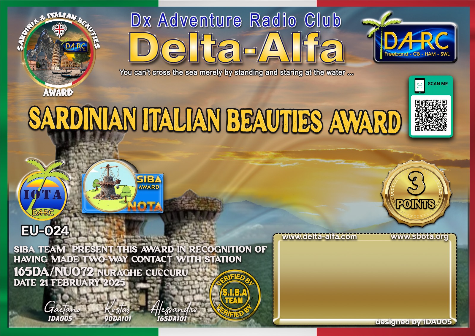 >>> 🐧NEW ONE SIBA 2025 🐧<<< 165DA/NU072 (Nuraghe Cuccuru) (by 165DA101 Alex) / 3 POINTS./ DATE: 21 February 2025 start @ 14.30 UTC / Freq. 7️⃣0️⃣5️⃣ SPLIT +10 Khz UP / PROVINCE 318 (Area metropolitana di Cagliari)/ Historical Region HR03 (Campidano di Cagliari) / Municipality I699 (Settimo San Pietro)