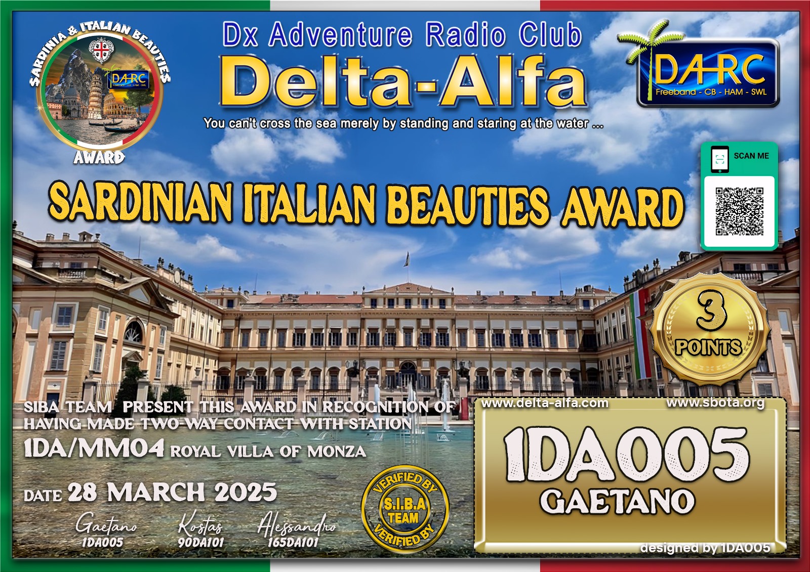 >>> 🐧NEW ONE SIBA 2025 🐧<<< 1DA/MM04 VILLA REALE DI MONZA (by 1DA005 Gaetano & 1DA006 Sergio)/ 3 POINTS./ DATE: 28 March 2025 start @ 09.30 UTC/ Freq. 7️⃣0️⃣5️⃣ SPLIT +10 Khz UP / PROVINCE 108 (Monza e Brianza)/ Municipality F704 (Monza)