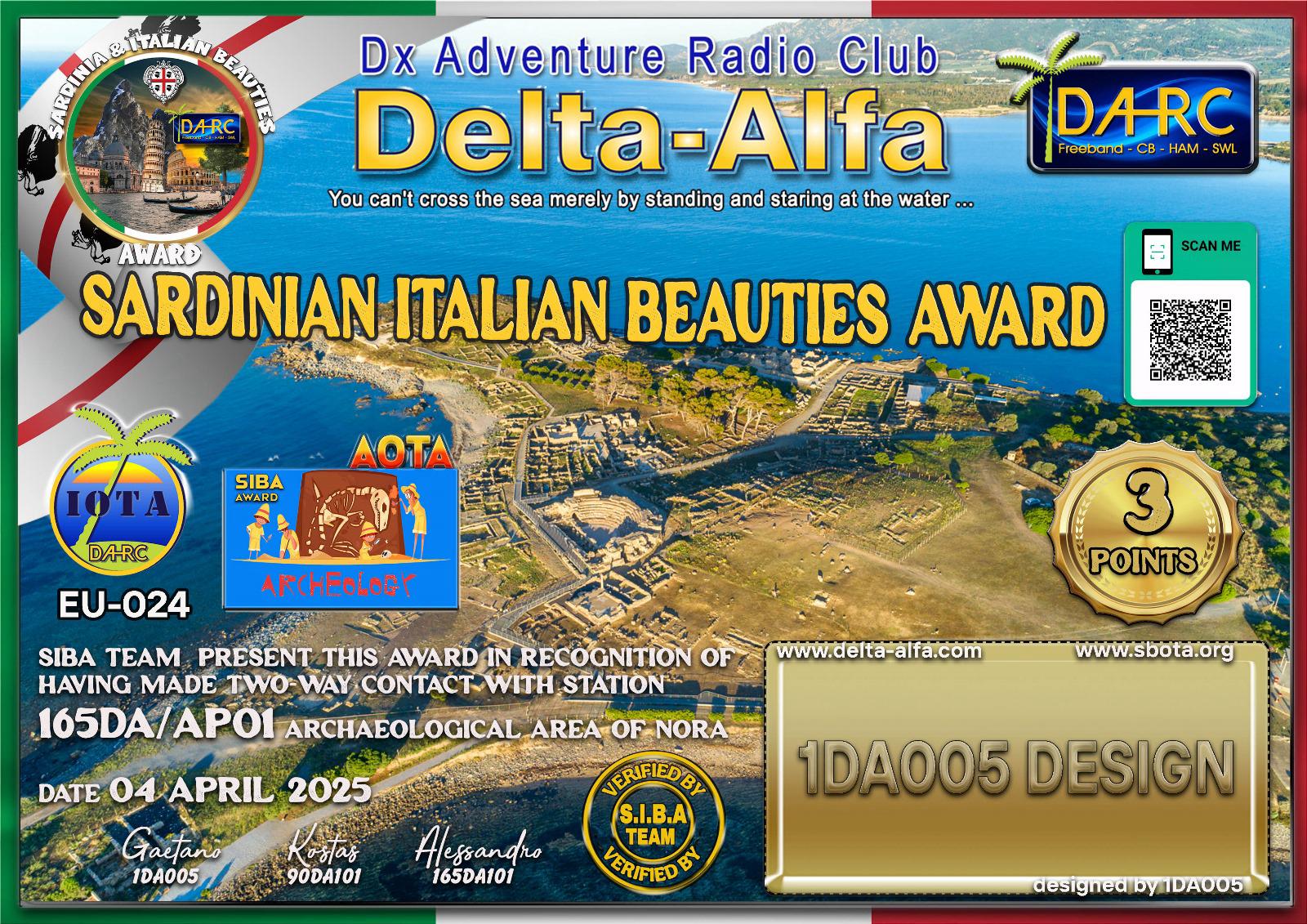 >>> 🐧NEW ONE SIBA 2025 🐧<<< 165DA/AP01 Archaeological area of Nora (by 165DA101 Alex) / 3 POINTS./ DATE: 04 april 2025 start @ 13.00 UTC / Freq. 7️⃣0️⃣5️⃣ SPLIT +10 Khz UP / PROVINCE 318 (Città Metropolitana di Cagliari) / Historical Region HR03 (Campidano di Cagliari) / Municipality Pula (H088)