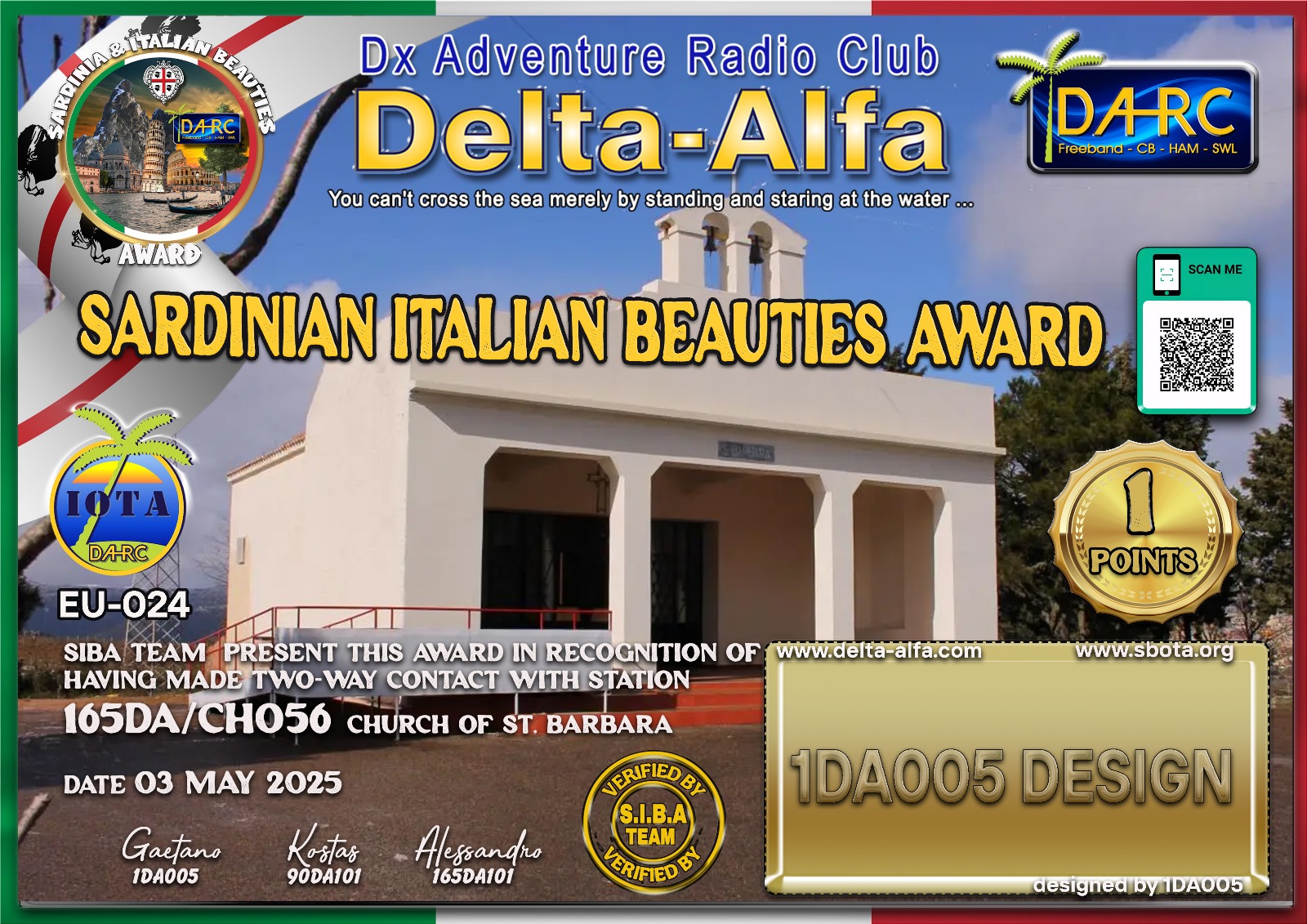 >>> đ§NEW ONE SIBA 2025 đ§<<< 165DA/CH056 Country Church Of St. Barbara (by 165DA101 Alex) / 1 POINTS./ DATE: 03 may 2025 start @ 11.30 UTC / Freq. STAY TUNED on WHATSAPP SIBA, SPLIT +10 Khz UP / PROVINCE 318 (CittĂ Metropolitana di Cagliari)/Â Historical Region HR08 (Sarrabus Gerrei) / Municipality B274 (Burcei)