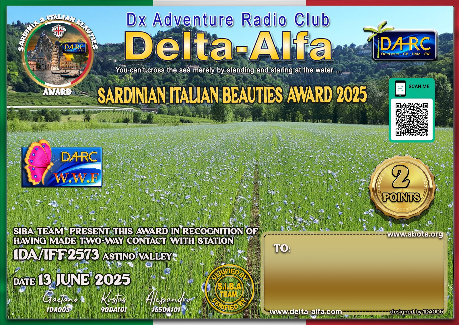 >>> 🐧NEW ONE SIBA 2025 🐧<<< 1DA/IFF2573 Astino Valley (by 1DA005 Gaetano / 2 POINTS / DATE: 13 june 2025 start about @ 11.00 UTC/ Freq. stay tuned on WhatsApp SIBA news / PROVINCE 016 (Bergamo)/ Municipality A794 (Bergamo)