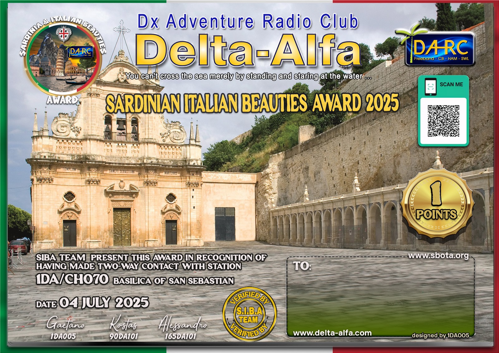 >>> đ§NEW ONE SIBA 2025 đ§<<< 1DA/CH070 Basilica of San Sebastian (by 1DA086 Carmelo)/ 1 POINTS / DATE: 04 july 2025 start @ 07.00 UTC / Freq. stay tuned on WhatsApp SIBA news / PROVINCE 089 (Siracusa)/ Municipality F107 Melilli