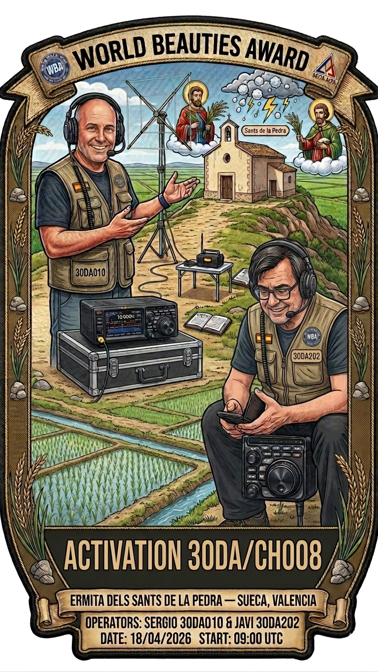 We are thrilled to announce a prestigious new activation for the World Beauties Award (WBA)! On April 18, 2026, our dedicated operators Sergio 30DA01 and 30DA202 Javi and his Friend Pepe will travel to the heart of the Valencian community to bring the voice of history to the airwaves.