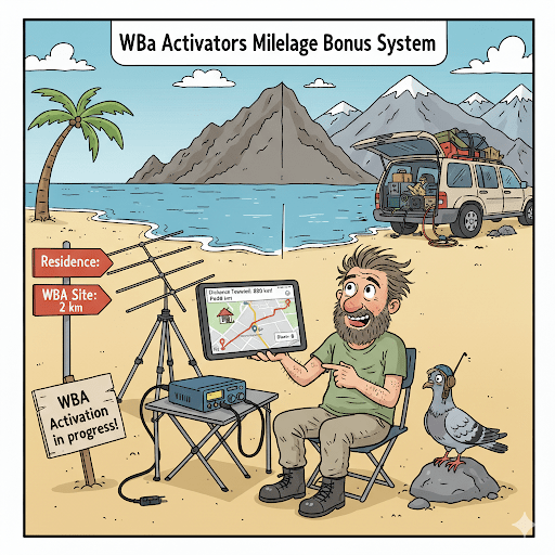 The WBA TEAM recognizes the significant personal, financial, and logistical commitment required to activate remote sites. To reward this effort, a Mileage Bonus is established to supplement the standard activation score.