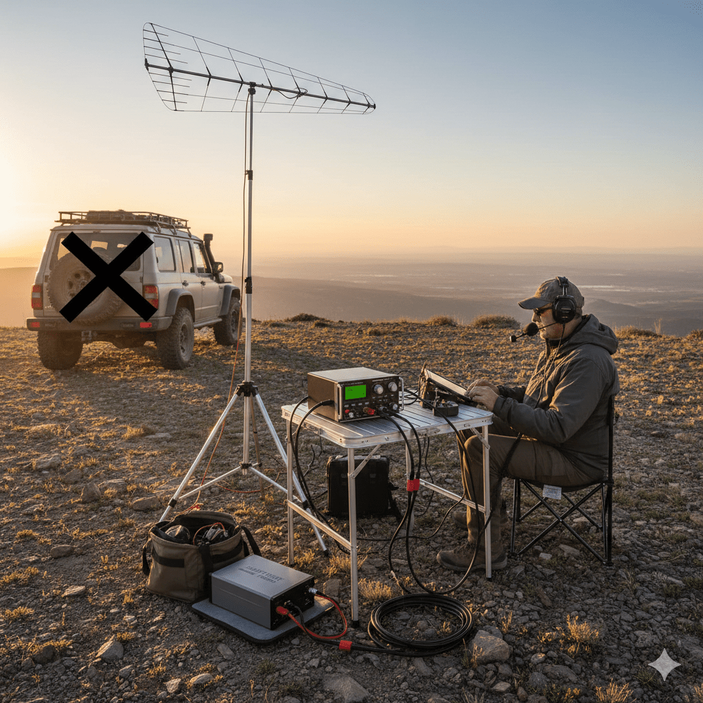 - Radiating Module (The “Arm”): Directional antenna (e.g., Skypper) mounted on a telescopic mast and lightweight tripod to maximize gain.
